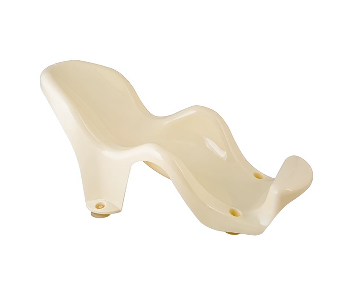Нежный кремовый цвет гармонирует с детской атрибутикой. Эргономичная спинка поддерживает естественное положение тела, а бортики предотвращают соскальзывание. Прошедшая тестирование конструкция выдерживает активных малышей — вы можете быть спокойны во время купания.