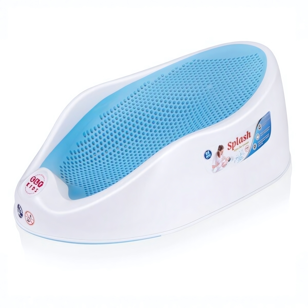 Горка разработана с участием педиатров: белый пластик с голубыми вставками не выцветает, легко моется и выдерживает ежедневное использование. Удобный наклон в 35° поддерживает правильное положение новорожденного, а рифленая поверхность предотвращает соскальзывание даже в мыльной воде.