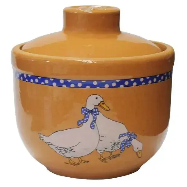 Горшочек керамический "Ломоносовский" 0,35л с крышкой, рисунок "Гуси", цвет в ассортименте