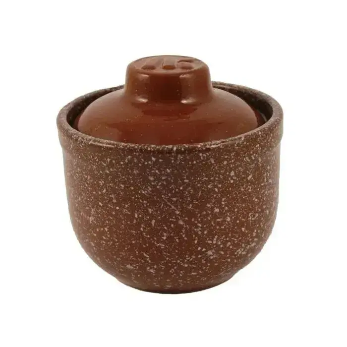 Горшочек пластиковый "Ломоносовский" 0,35л с крышкой, цвет мраморный коричневый