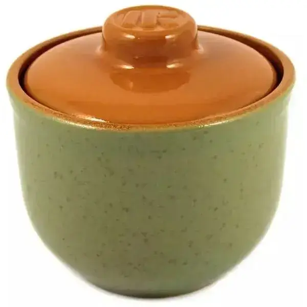 Изготовлен из экологичной глины с глазурованным покрытием. Устойчивое дно предотвращает опрокидывание. Компактные размеры (высота 12 см, диаметр 9 см) позволяют разместить на любой полке. Крышка плотно прилегает благодаря резиновому уплотнителю.