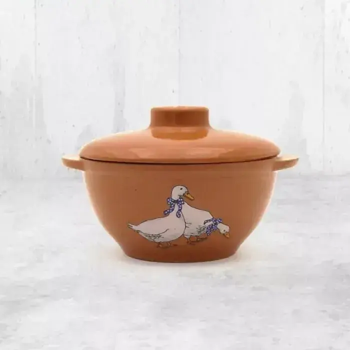 Высококачественная керамика равномерно распределяет тепло при запекании, предотвращая пригорание. Материал экологически безопасен и не впитывает запахи. Горшочек подходит для использования в духовых шкафах, микроволновых печах и для подачи на стол.