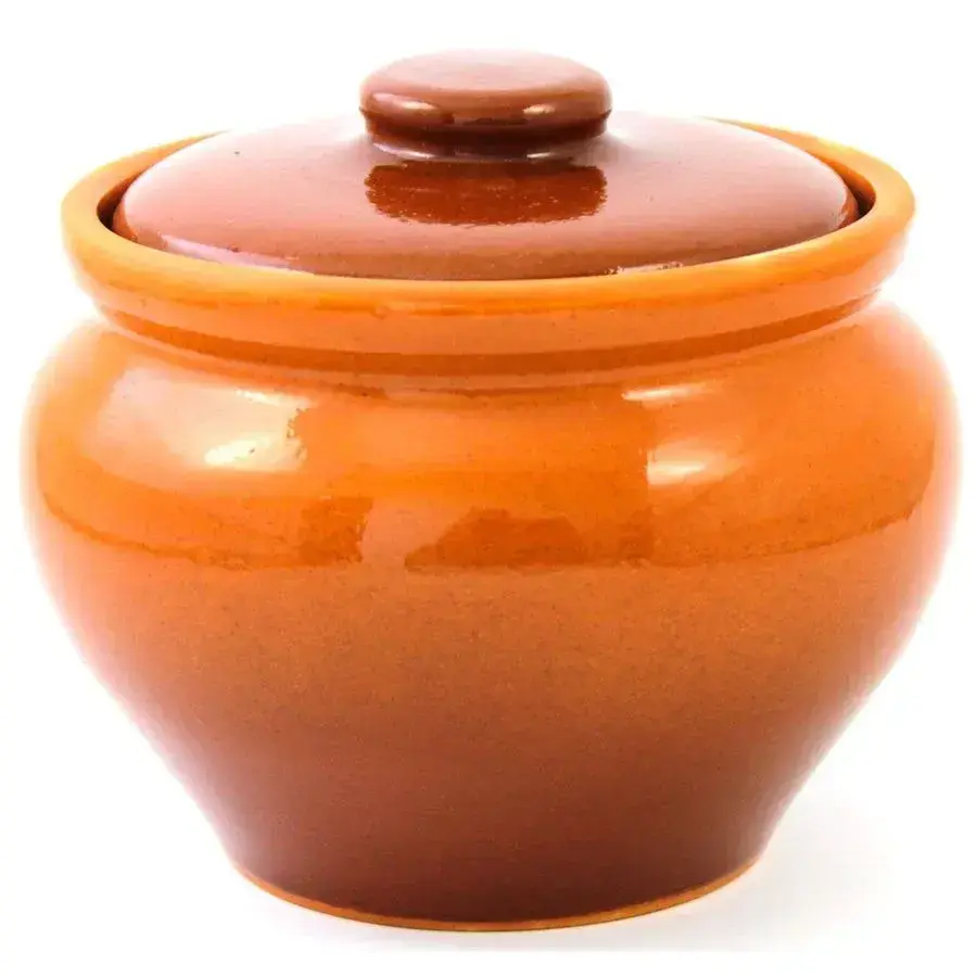 Благодаря прочному материалу и плотной крышке, горшочек надёжно защищает продукты от влаги и посторонних запахов. Его можно использовать не только для хранения, но и для подачи блюд на стол — классический дизайн в терракотовом цвете дополнит любую сервировку.