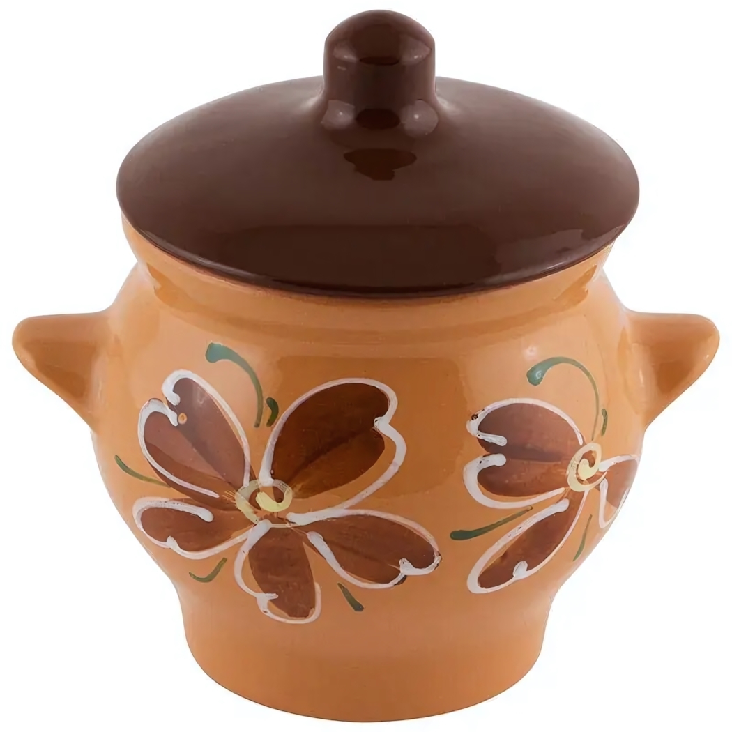 Горшок керамический для жаркого и запекания 0,65 л, устойчивый к высоким температурам, цвет цветы