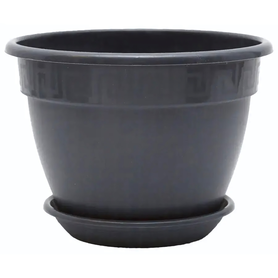 Пластиковый горшок с поддоном сочетает эргономичный дизайн и функциональность. Удобная дренажная система защитит корни от переувлажнения, а стильный антрацитовый оттенок гармонично впишется в любой интерьер.