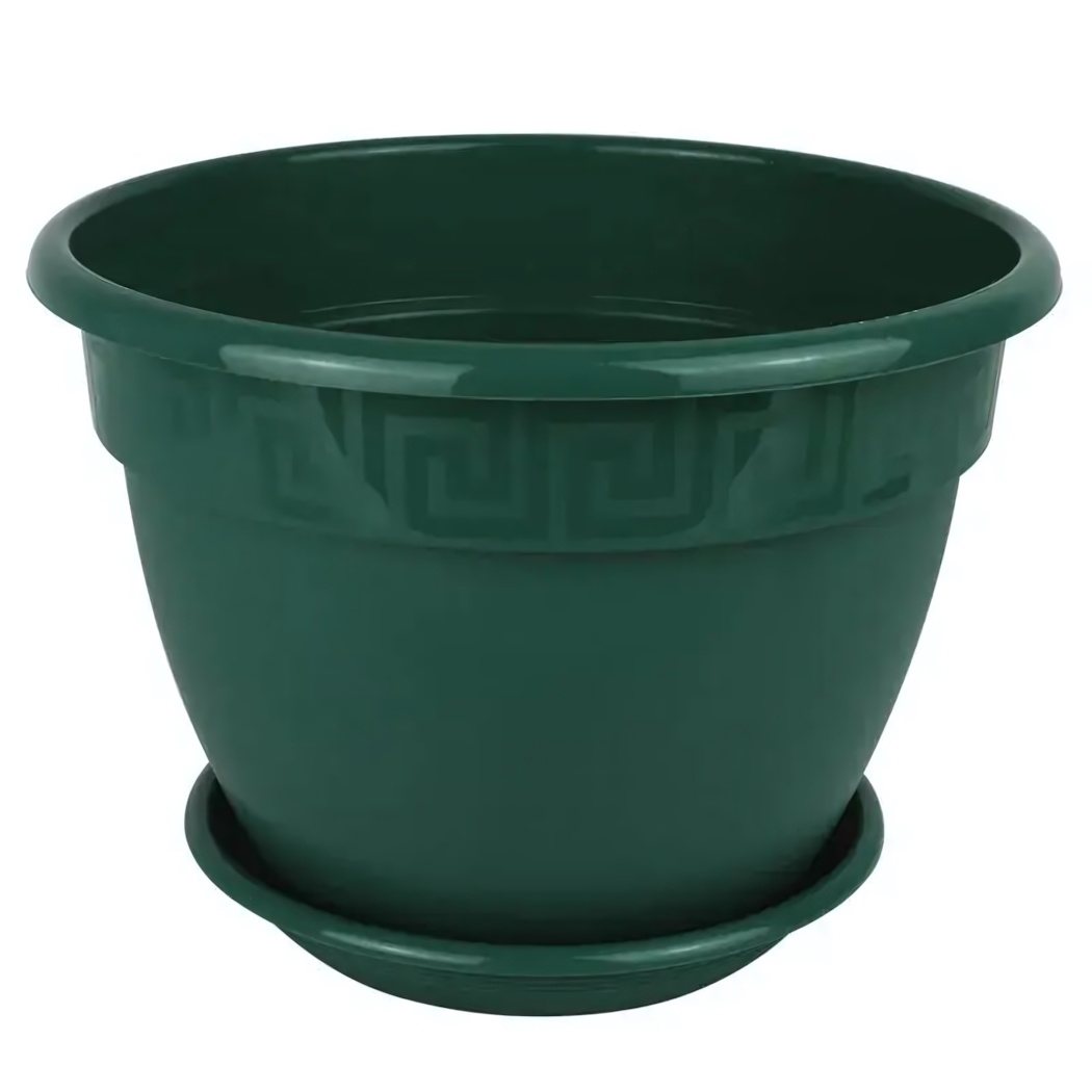 Горшок 'Антик' сочетает элегантный дизайн и практичность. Устойчивая конструкция с поддоном обеспечивает защиту от протекания, а насыщенный цвет малахита гармонично впишется в любой интерьер.
