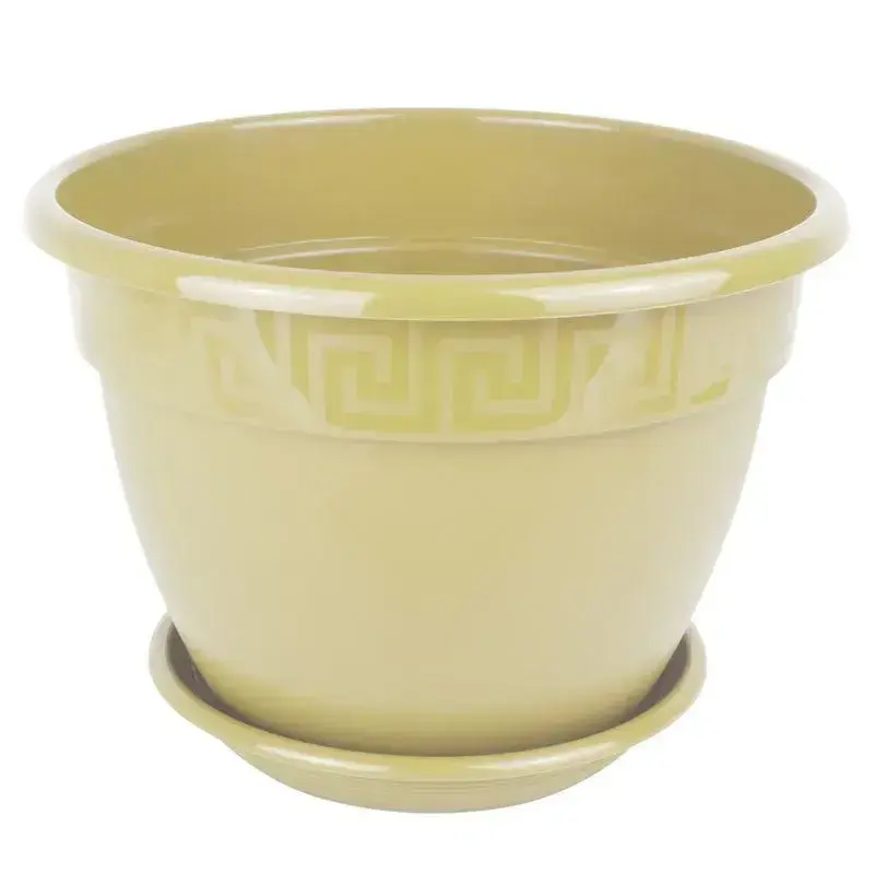 Горшок цветочный «Антик» с поддоном, D22×H18см, 3,6л, пластик, декор греческий ключ, крем