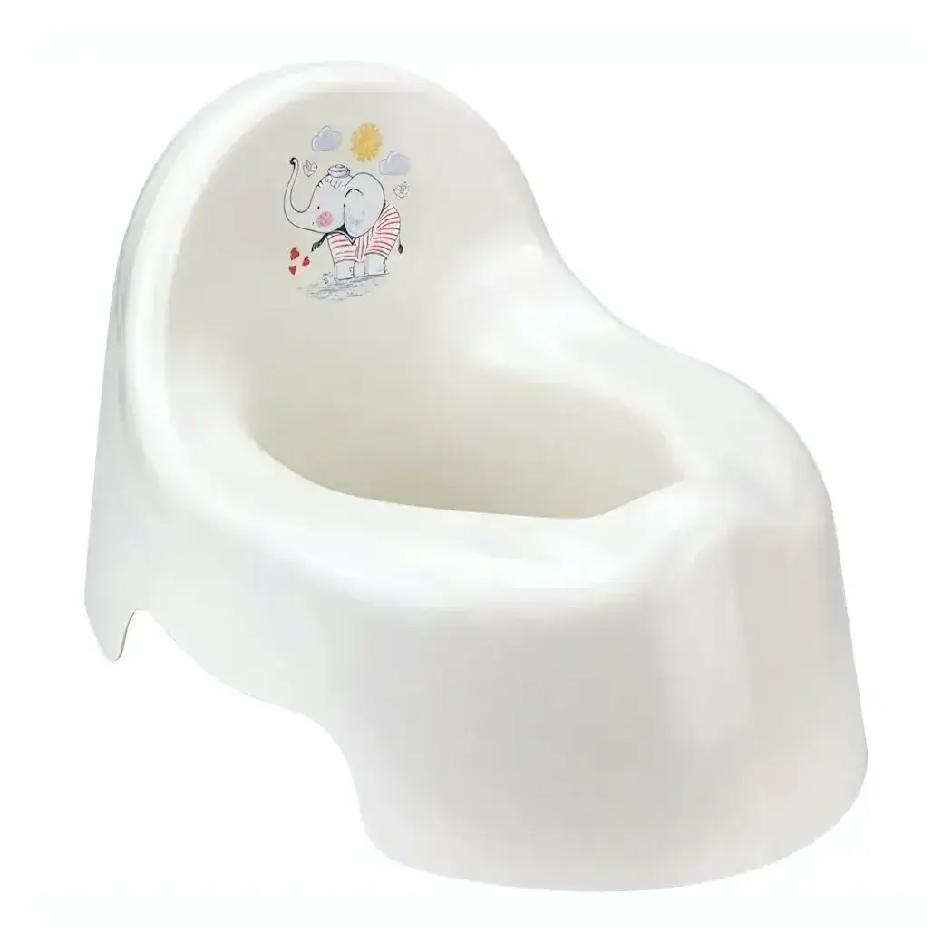 Горшок детский «Слоник» с анатомической спинкой, пластик, белый, рисунок облака