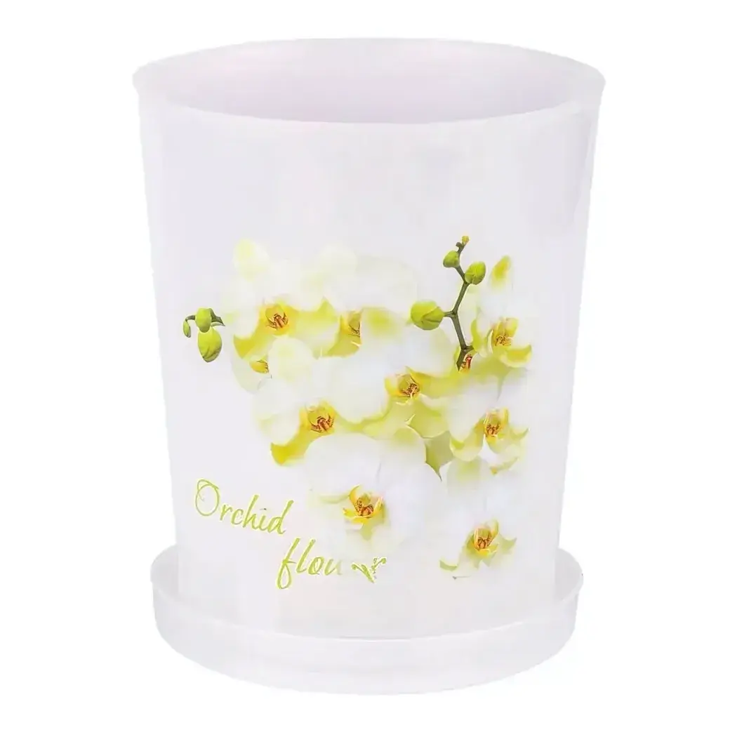 Горшок для орхидей "Orchid Flow" 1,2л с поддоном, пластик, белый
