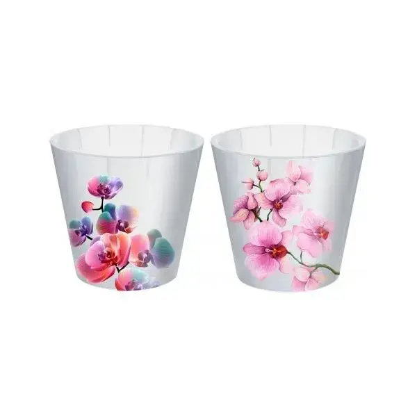 Набор из 16 горшков для орхидей 1,6л, пластик, с дренажной вставкой, белый перламутр