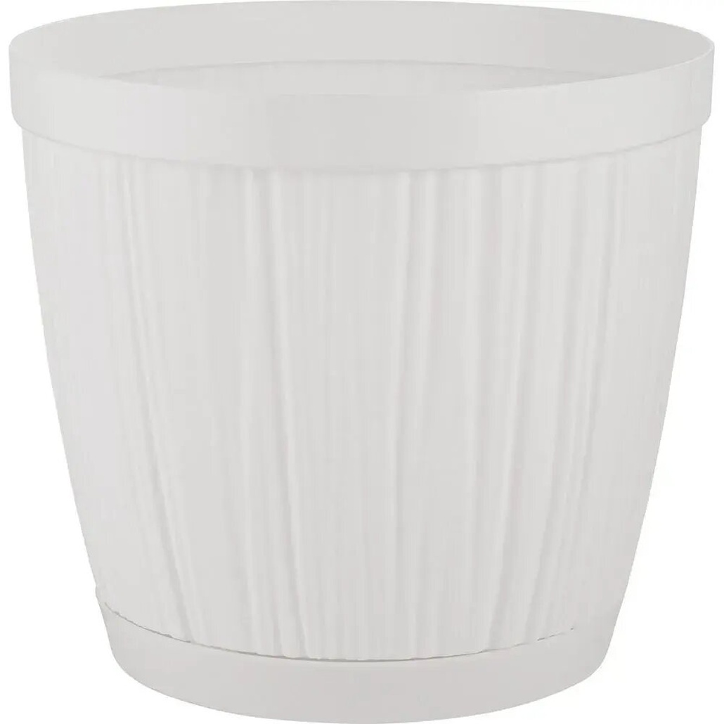 Горшок для цветов «BARCELONA» пластиковый 9,6л, D270мм, белый, рифлёная текстура