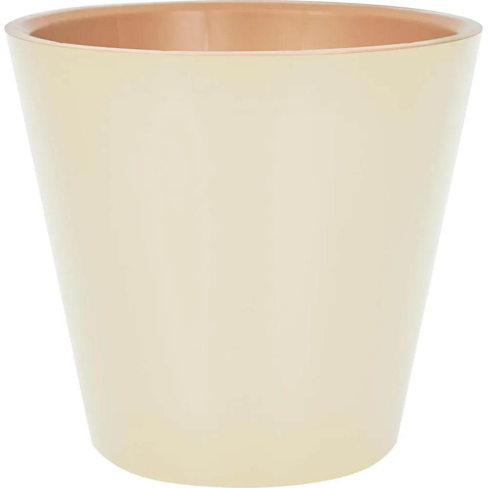 Диаметр верхней части — 280 мм, общий объем — 10,5 литров. Сливочный оттенок гармонично вписывается в интерьеры в скандинавском стиле и прованс. Материал устойчив к УФ-излучению — цвет не выгорает на солнце.