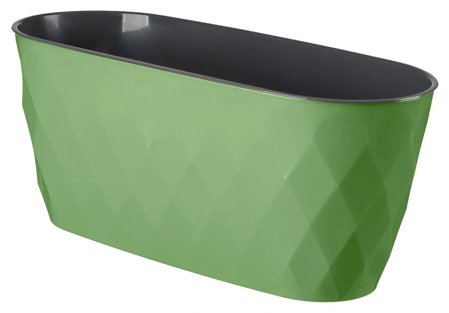 Горшок имеет овальную форму и выполнен в зеленом цвете с черной внутренней частью. Его размеры идеально подходят для создания красивых цветочных композиций. Не упустите возможность добавить этот элегантный горшок в ваш дом и наслаждайтесь красотой ваших растений!