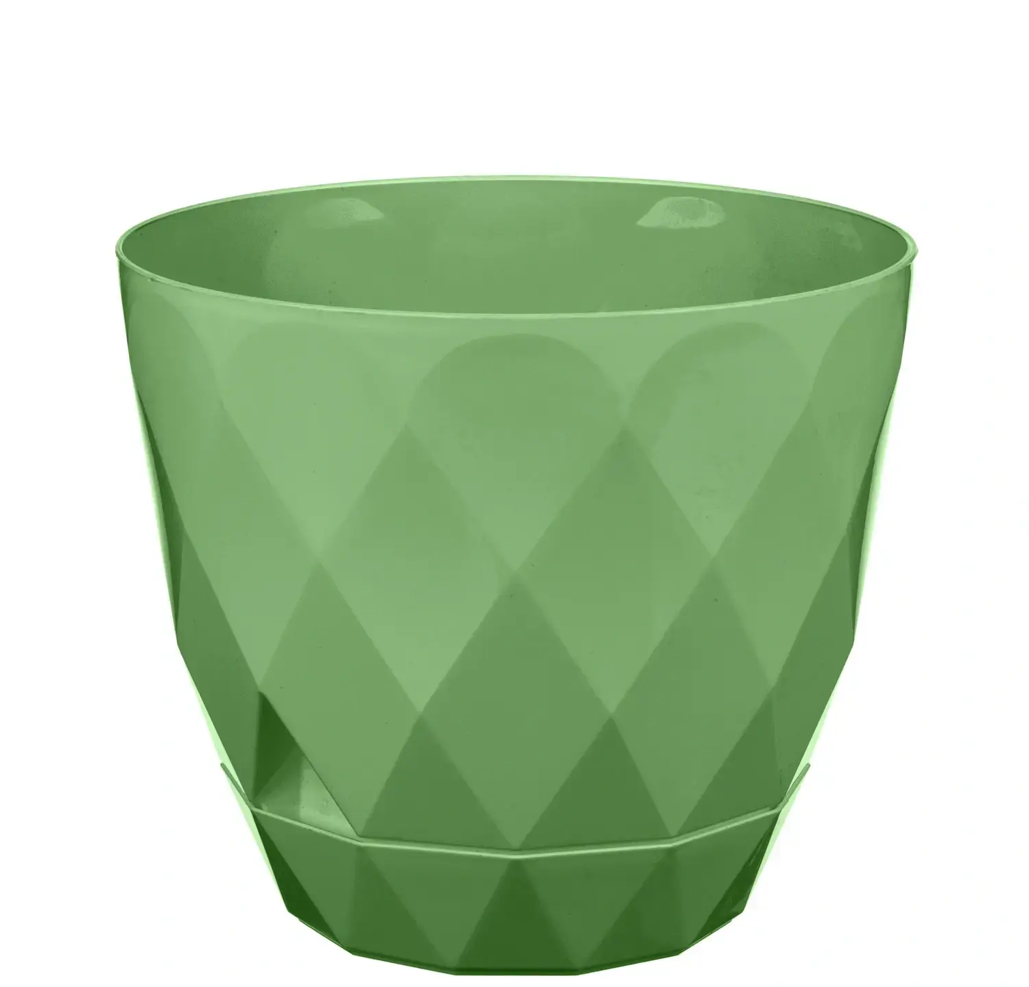 Пластиковый горшок объемом 2,3 литра с диаметром 17,5 см станет отличным решением для любителей растений. Его стильный и минималистичный дизайн с рельефной фактурой, напоминающей огранку драгоценного камня, гармонично впишется в любой домашний интерьер. Спокойный зеленый цвет добавит свежести и уюта в ваше пространство.