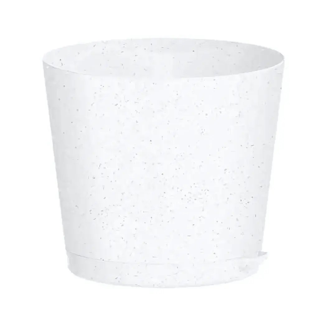 Горшок имеет гладкую поверхность и цилиндрическую форму, что делает его легким в уходе. Он представлен в белом цвете с мелкими серыми вкраплениями, что добавляет ему уникальности. Размеры горшка позволяют использовать его как в помещении, так и на улице, что делает его универсальным аксессуаром для вашего сада или балкона.