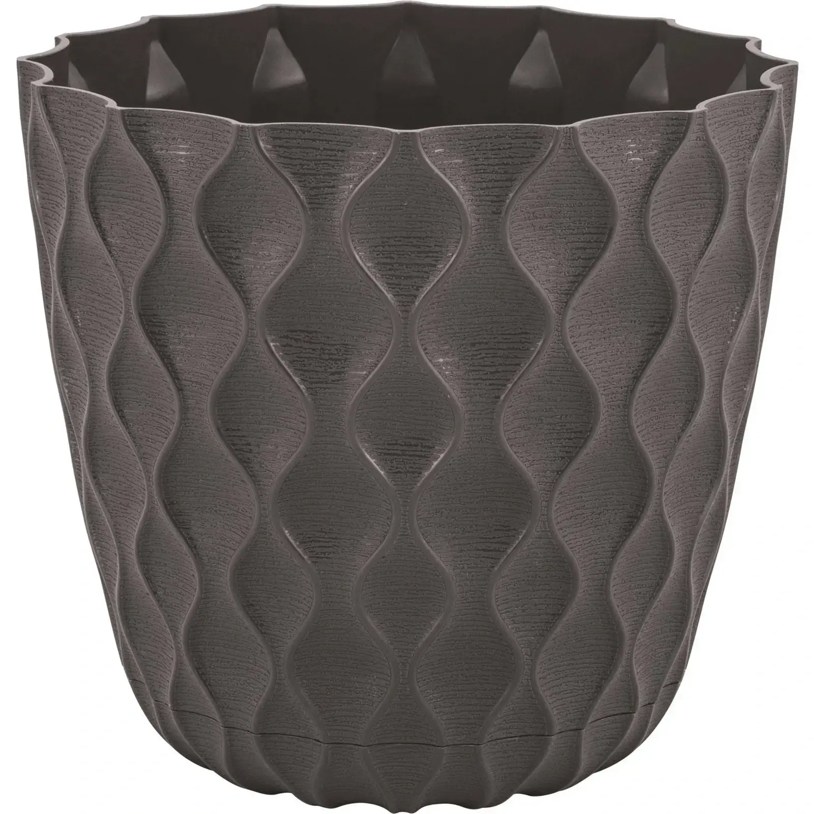 Пластиковый горшок «Wave» сочетает природную эстетику волн и продуманную функциональность. Волнистый рельеф и глубокий оттенок горького шоколада создают акцент в интерьере, а скрытая дренажная система обеспечивает идеальные условия для корневой системы.