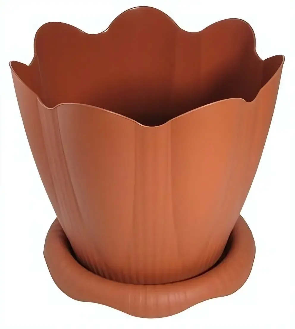 Пластиковый горшок «Эдельвейс» — это не просто емкость для растений, это стильный элемент декора, который добавит уют и гармонию в ваш дом. Его терракотовый цвет и волнистый край придают горшку уникальный вид, а легкость и удобство использования делают его идеальным для любого садовода.