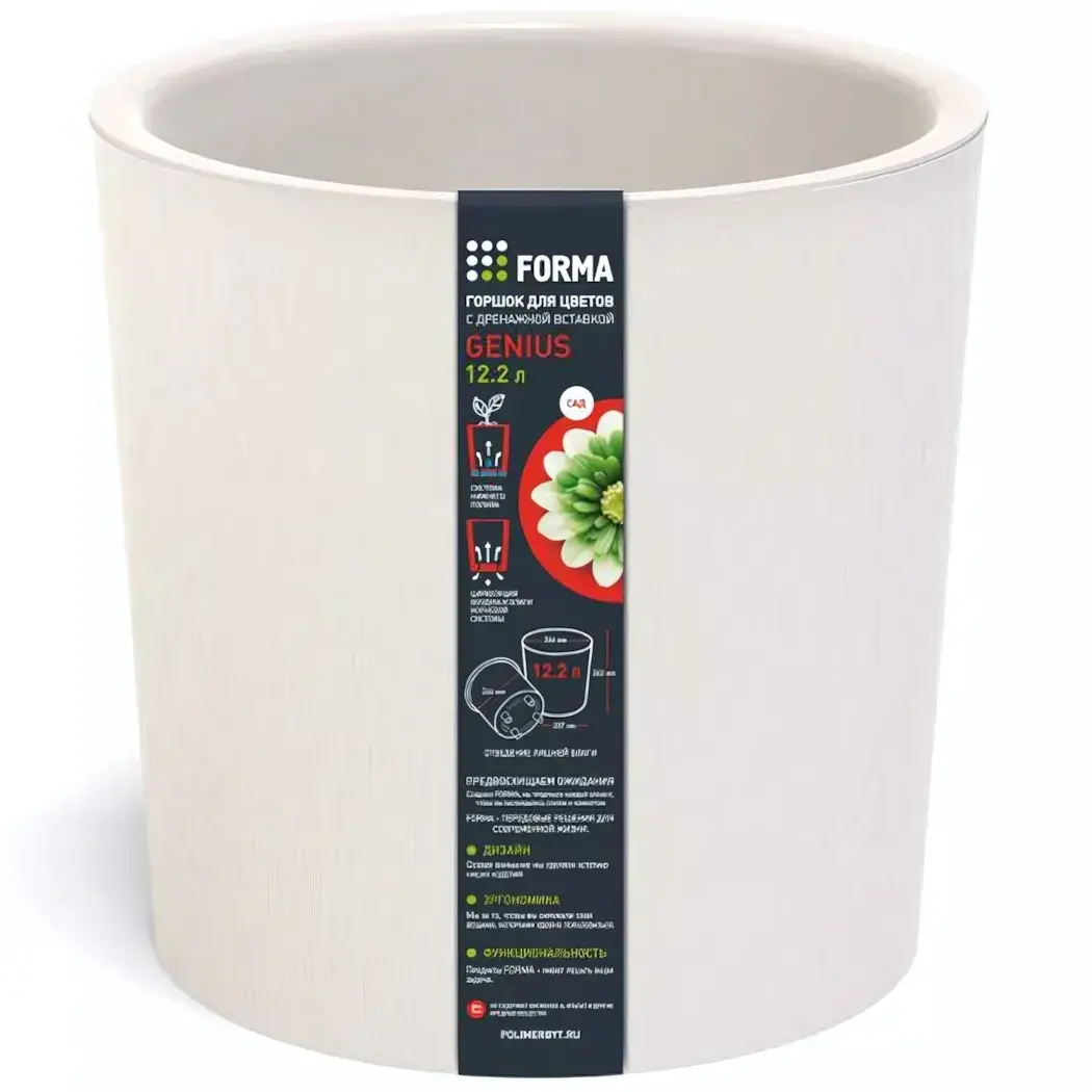 Горшок для цветов «Genius» 12л, пластик, дренажная вставка, d26.6см, молочный
