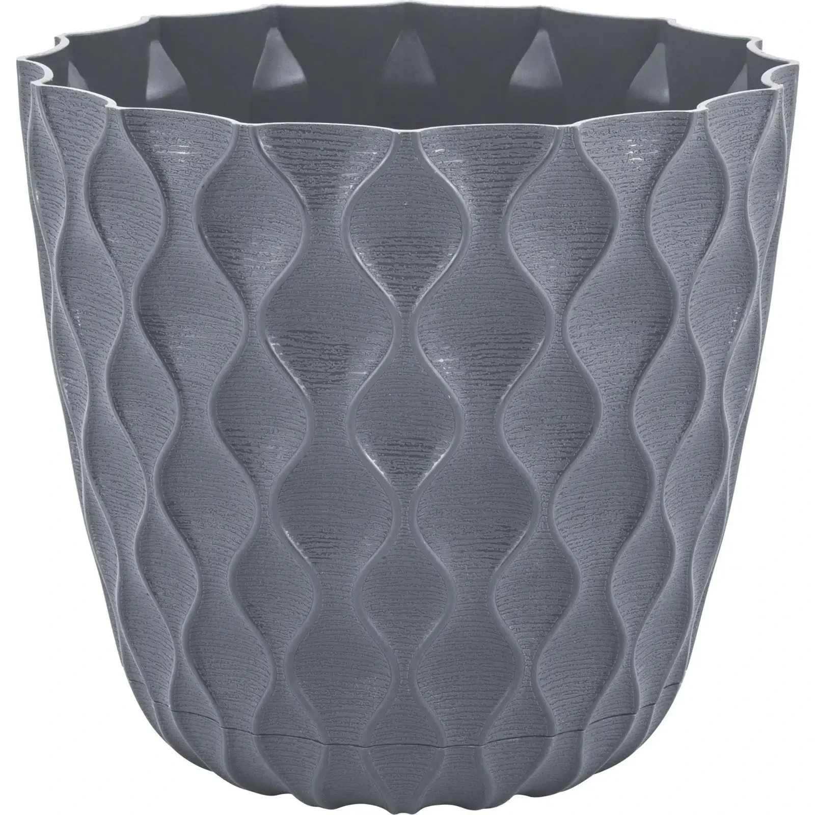 Горшок для цветов пластиковый 1,4л d-14,5см «Wave», с дренажной сеткой и съемным поддоном, вулканический серый