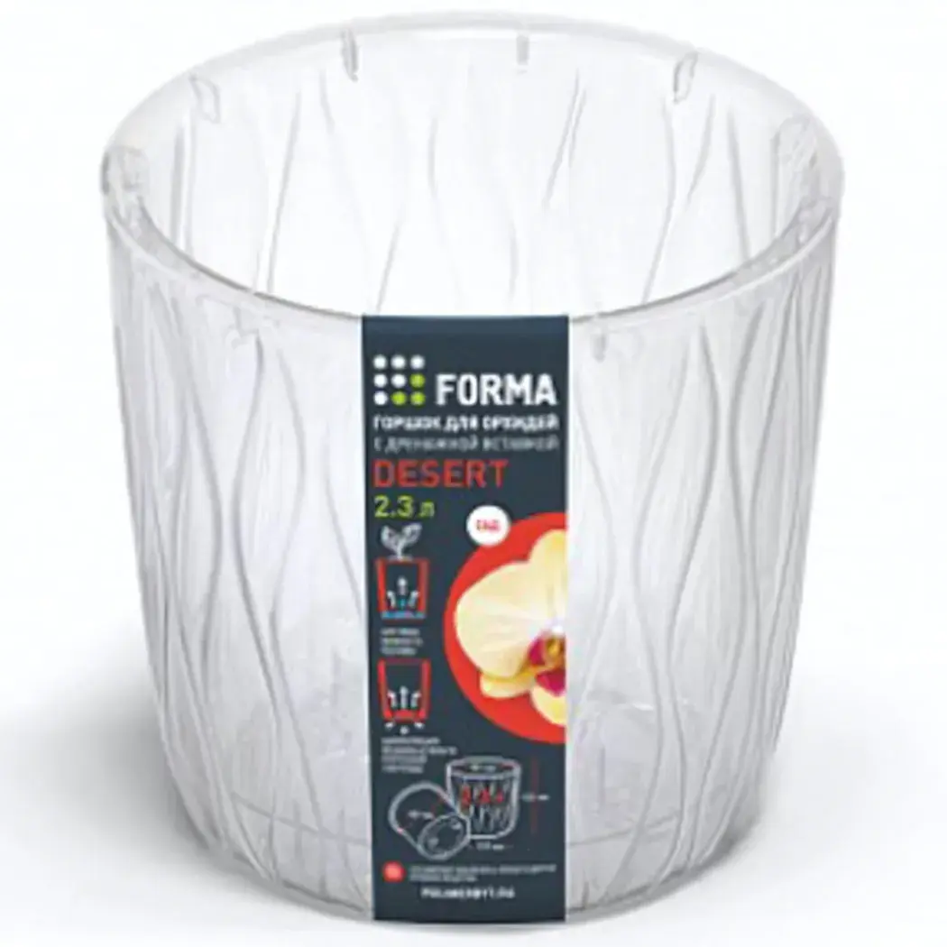 Горшок для цветов 'Desert' 2,3л, прозрачный пластик с дренажной вставкой d-15,7см