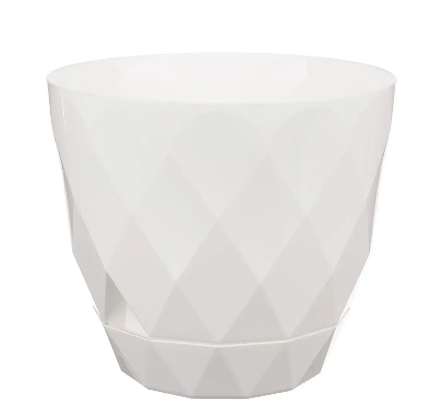 Этот стильный и функциональный горшок для цветов объёмом 2,3 литра станет отличным дополнением к вашему домашнему пространству. Его современный дизайн с рельефной фактурой, напоминающей огранку драгоценного камня, и спокойный белый цвет гармонично впишутся в любой интерьер, добавляя нотку элегантности и минимализма.