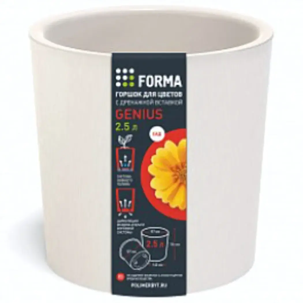 Создайте идеальный уход за растениями с пластиковым горшком «Genius» объемом 2,5 литра. Благодаря встроенной дренажной вставке, он предотвращает застой воды, что способствует здоровье и долговечности корней. Этот легкий и прочный горшок не содержит вредных веществ, таких как бисфенол-А и фталаты, обеспечивая безопасность для ваших растений и дома.