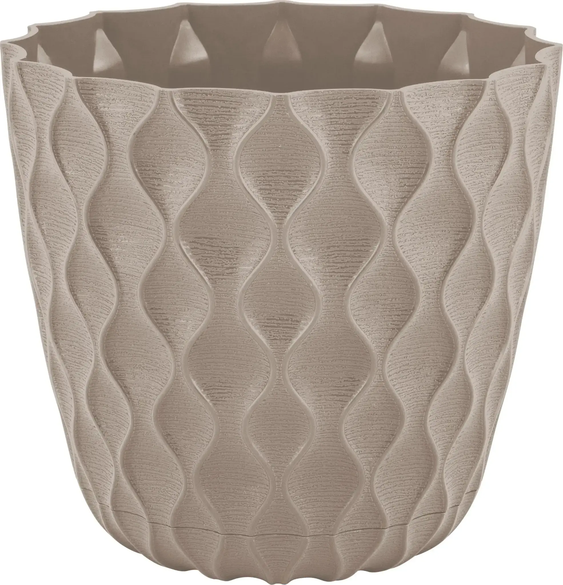 Создайте уют и гармонию в вашем доме с помощью горшка для цветов «Wave». Этот пластиковый горшок объемом 2,5 литра и диаметром 17,5 см не только украсит ваш интерьер, но и обеспечит комфорт вашим растениям благодаря встроенной дренажной системе и съемному поддону. Умиротворяющая текстура волнистой поверхности и стильный светло-коричневый цвет делают его универсальным элементом декора, который подойдет для любого стиля.