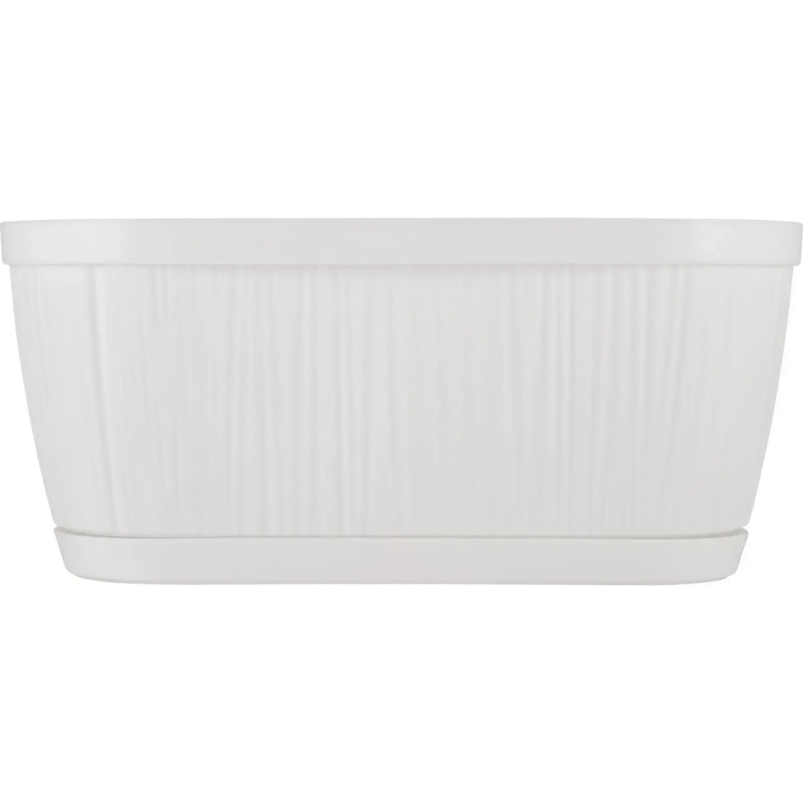 Горшок имеет размеры 27,5 см в длину, 14,5 см в ширину и 12,2 см в высоту, что делает его идеальным для размещения на подоконниках, столах или в саду. Его белый цвет и текстурированная поверхность придают ему уникальный вид, который будет радовать глаз и подчеркивать красоту ваших растений.