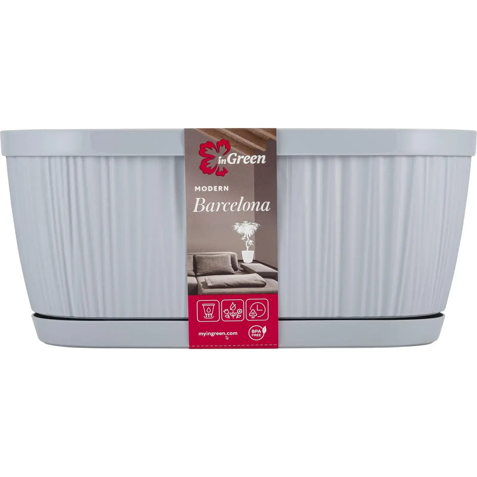 Горшок для цветов пластиковый 'Barcelona' 2,7л серый 27,5х14,5х12,2см с дренажной сеткой