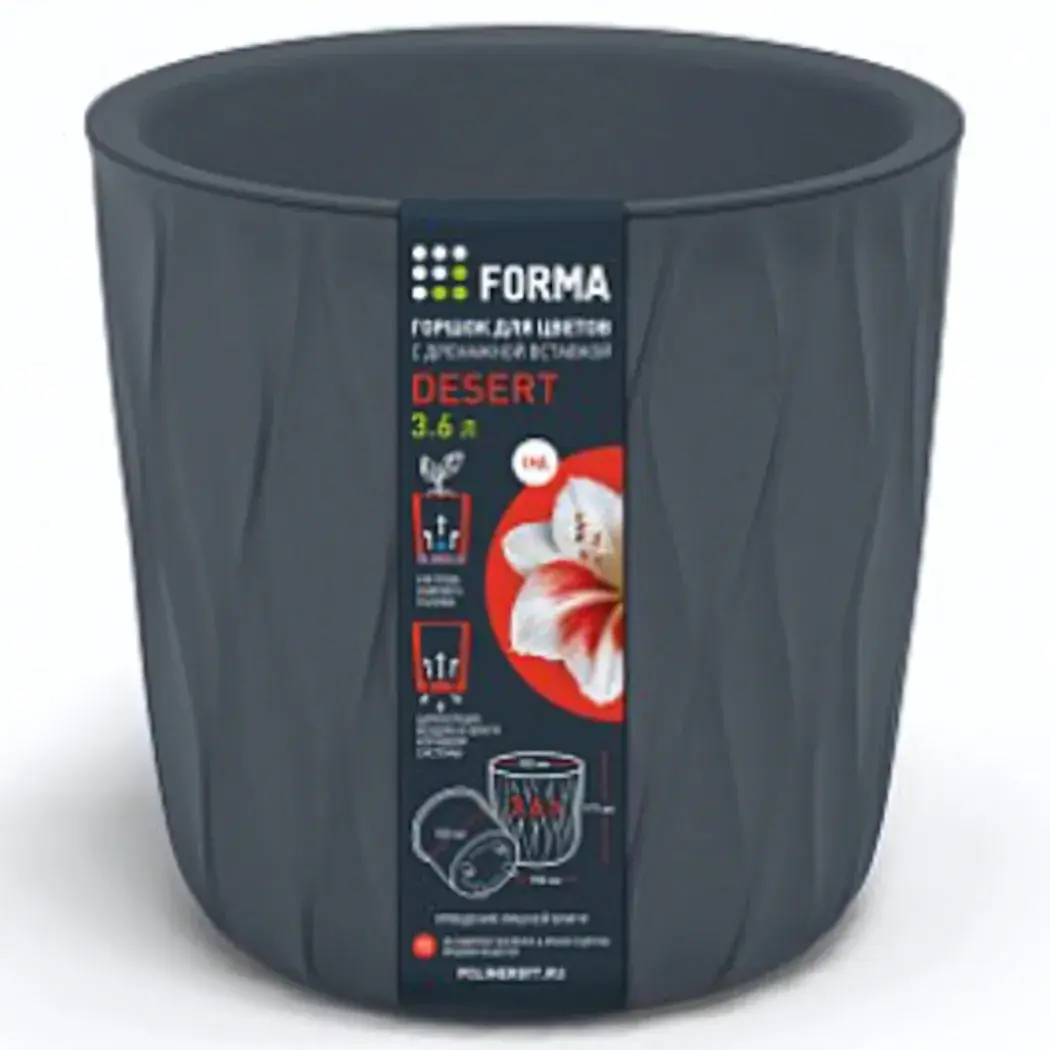 Превратите уход за цветами в удовольствие с горшком 'Desert'. Его продуманная конструкция обеспечивает идеальные условия для роста растений и создает привлекательный акцент в интерьере.