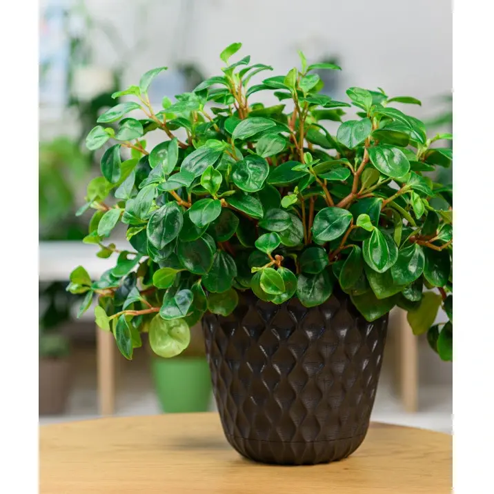 Благодаря прочному пластику горшок сохраняет форму даже при интенсивном использовании. Его нейтральный оттенок "горький шоколад" гармонично впишется в любой интерьер. Уход за изделием прост – достаточно протереть влажной тканью.
