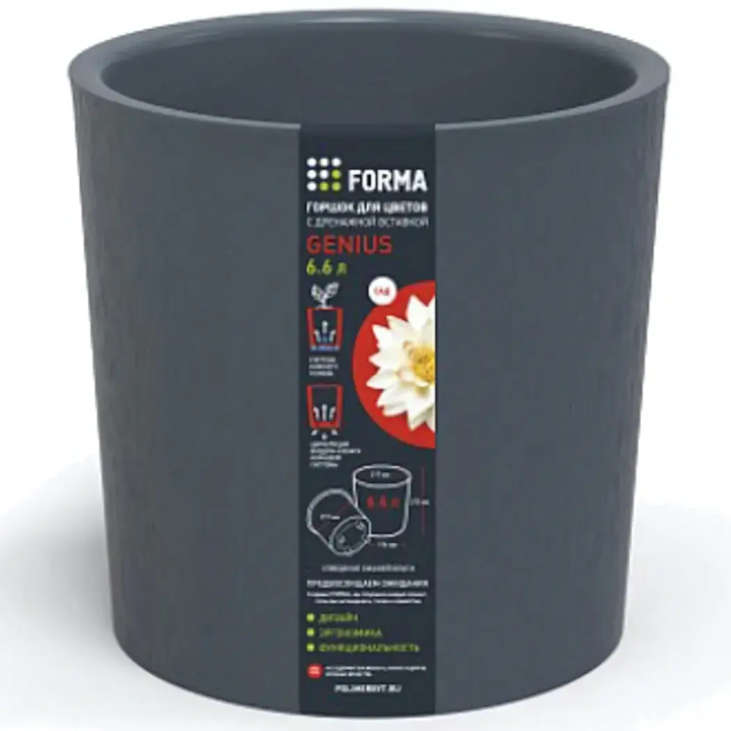 Испытайте комфорт ухода за любимыми цветами с горшком для цветов «genius». Этот пластиковый горшок объёмом 6.6 литра создан для тех, кто ценит надежность, современный стиль и заботу о здоровье растений. Глубокий серый цвет без лишних деталей гармонирует с любым интерьером, добавляя изысканности и минимализма.
