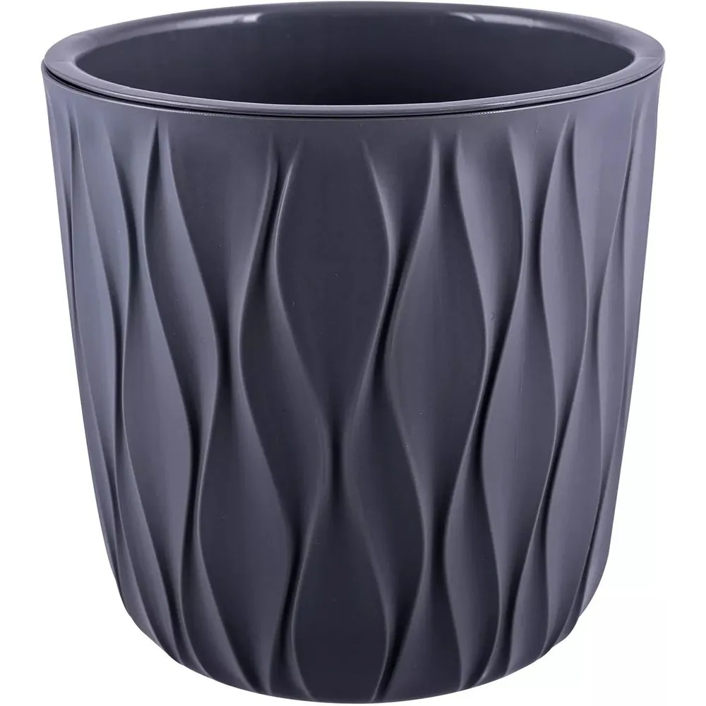 - Рельефная поверхность — вертикальный волнообразный узор по всему периметру добавляет горшку визуальной текстуры и делает его приятным на ощупь.