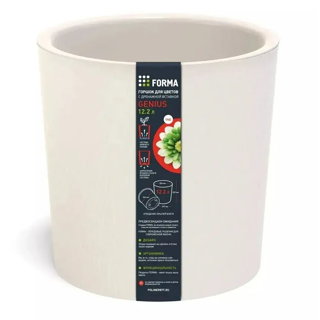 Горшок для цветов с дренажной системой "Genius" 12,2л, молочный, d266×h263мм