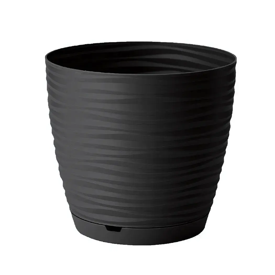 Пластиковый горшок для цветов объемом 9,1 литра и диаметром 26,7 см — это идеальное решение для вашего дома или офиса. Его стильный черный цвет и современный дизайн легко впишутся в любой интерьер, добавляя нотку элегантности и уюта. Этот горшок не только красив, но и функционален, обеспечивая оптимальный дренаж для корней растений, что способствует их здоровому росту.