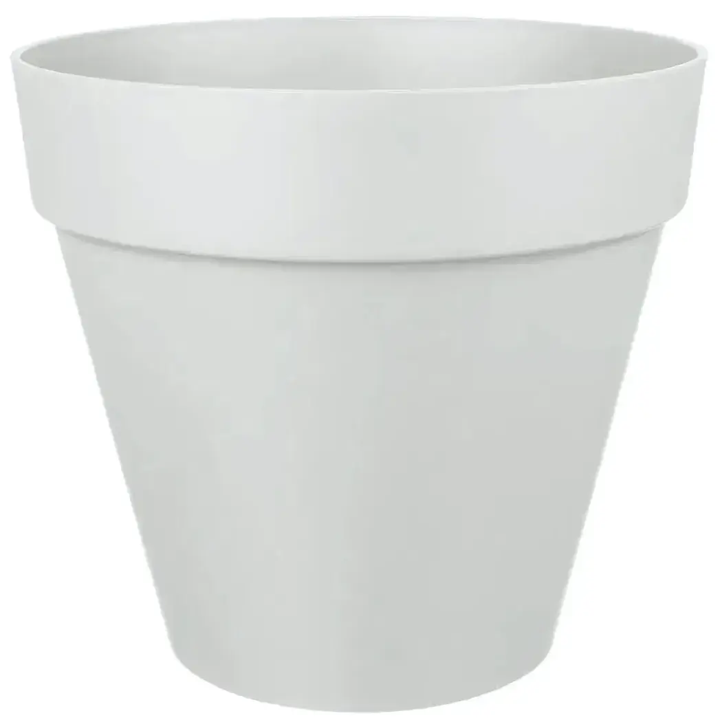 Диаметр горшка 31 см, объем 14 л. Светло-серый цвет универсален и сочетается с любым стилем. Материал горшка гладкий, устойчивый к влаге и перепадам температур (точный материал не указан, но визуально пластик или керамика). Конструкция без лишних декоративных деталей – исключительно практичное решение для повседневного использования.