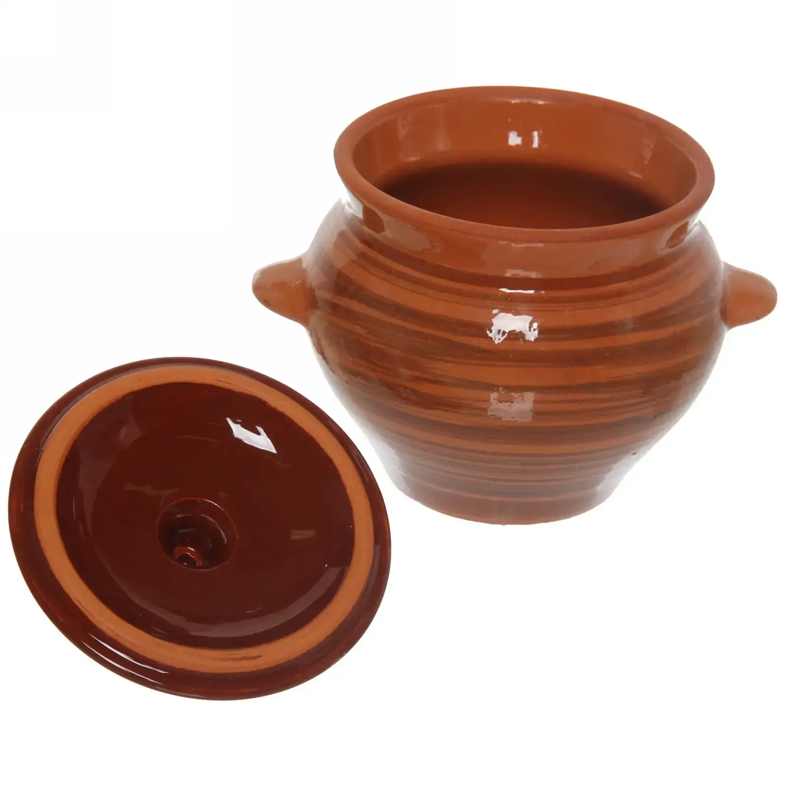 Горшок изготовлен из высококачественной керамики с глазурованным покрытием. Размеры подобраны для комфортного приготовления и хранения. В комплект входит плотно прилегающая крышка с удобным выступом для снятия.