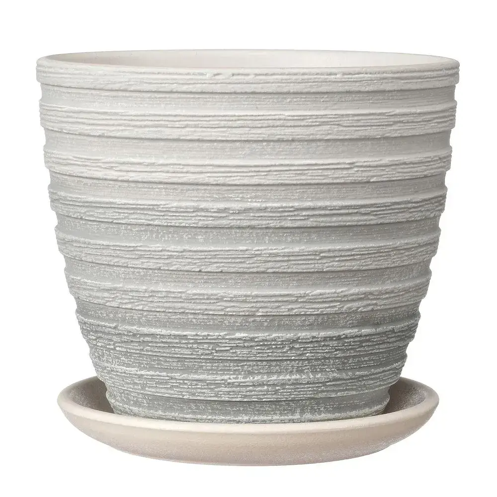 Горшок керамический «Букле» с поддоном, серый крокус, рифленая текстура, дренаж
