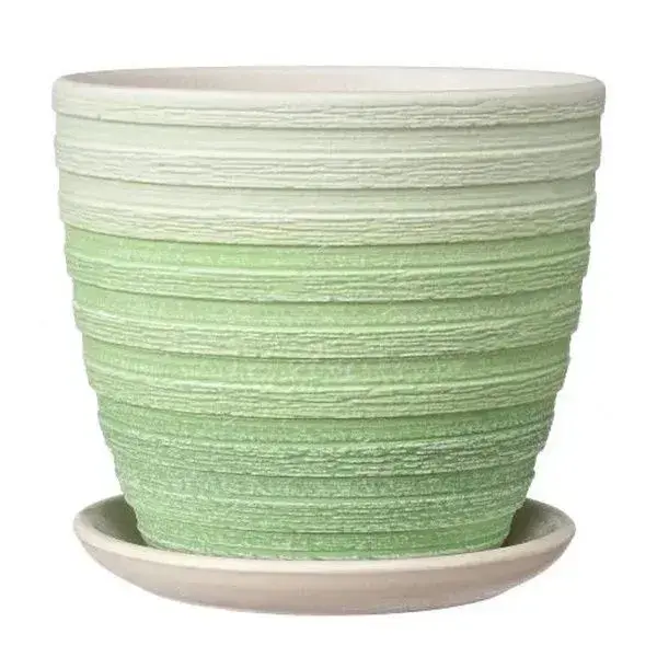 Горшок керамический с блюдцем 'Букле', градиентный зеленый, рифленая поверхность