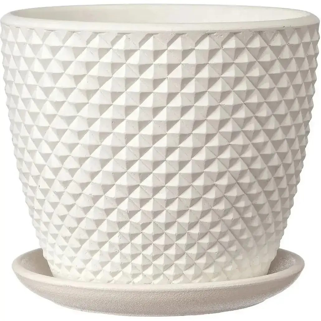 Горшок для цветов керамический "Грань" белый, цилиндр, геометрический рельеф, с поддоном, комфорт для растений