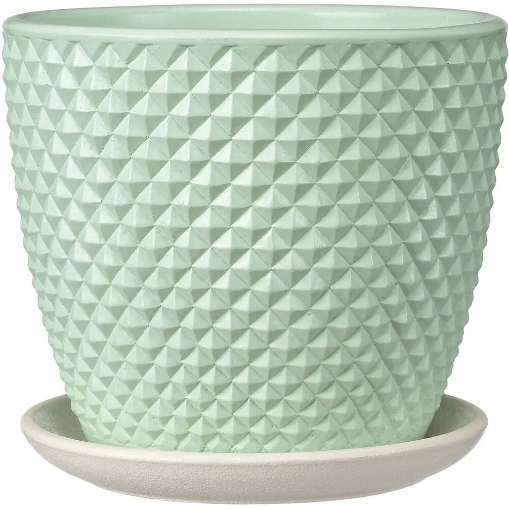 Горшок керамический «Грань» с дренажным отверстием, зеленый бутон, №3