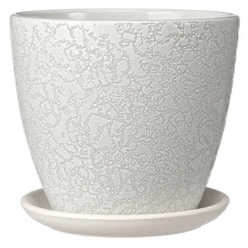 Изготовлен из экологичной керамики, которая сохраняет оптимальный температурный режим для растений. Гладкая внутренняя поверхность упрощает очистку, а рельефный внешний узор скрывает следы эксплуатации. Подходит для фикусов, суккулентов и декоративно-лиственных культур.