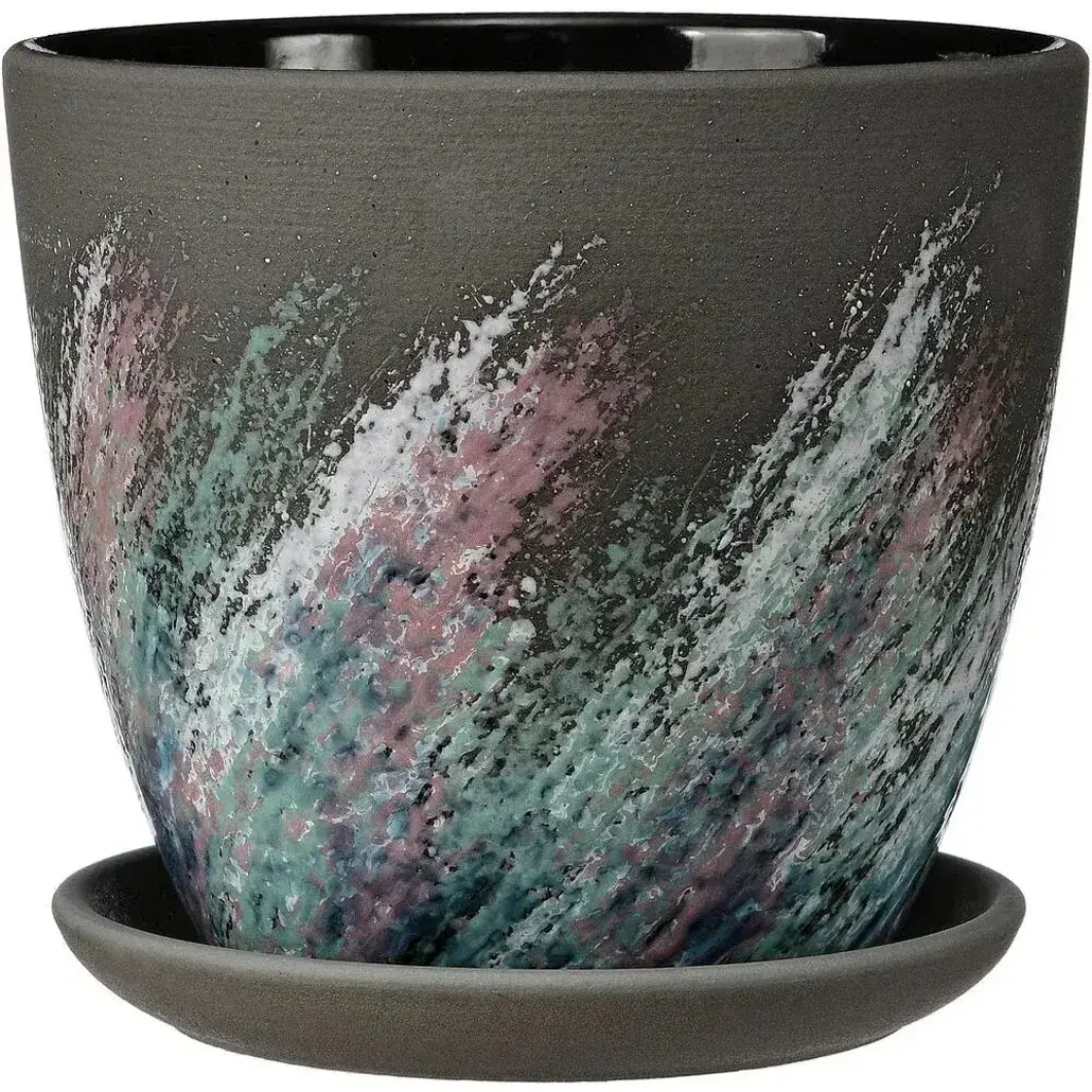 Горшок керамический с поддоном 'Живопись Черный Крокус', матовый, темно-серый с акцентами