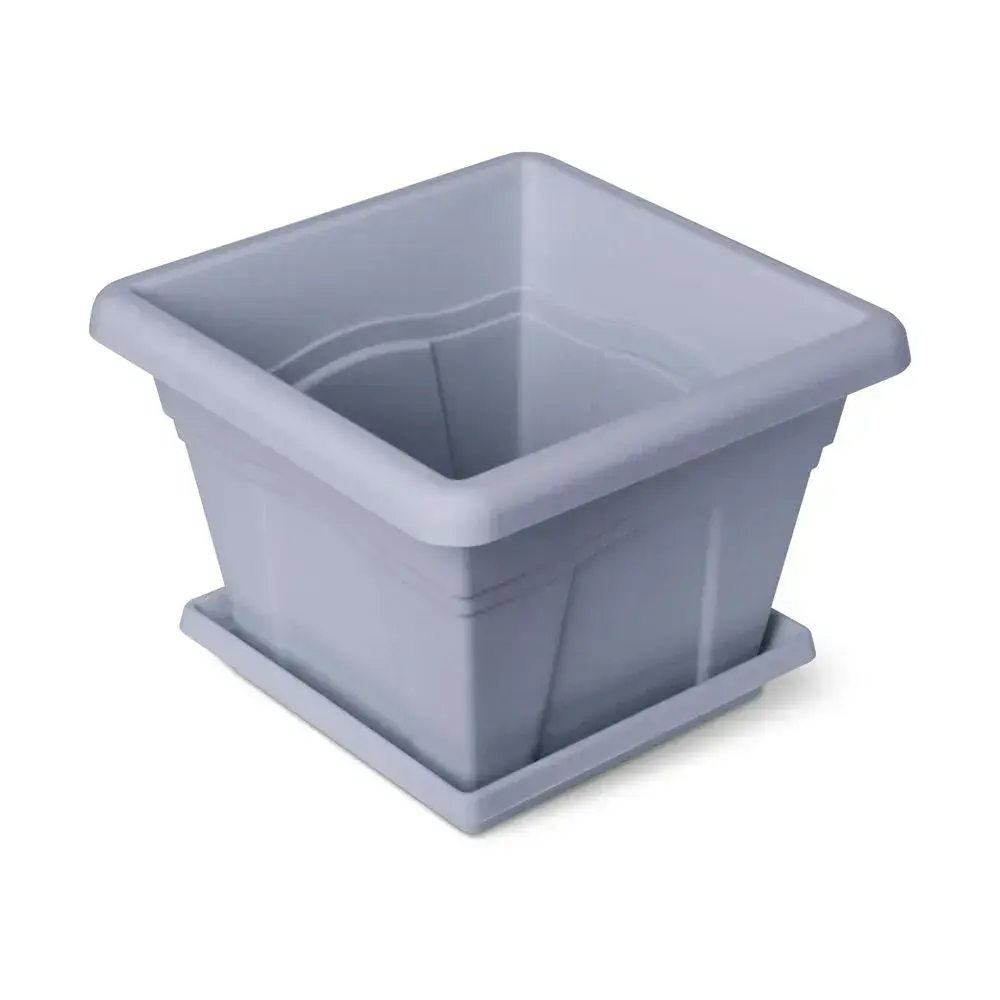 Горшок цветочный квадратный с поддоном 8.1 л, 28 см, серый, комплект 12 шт