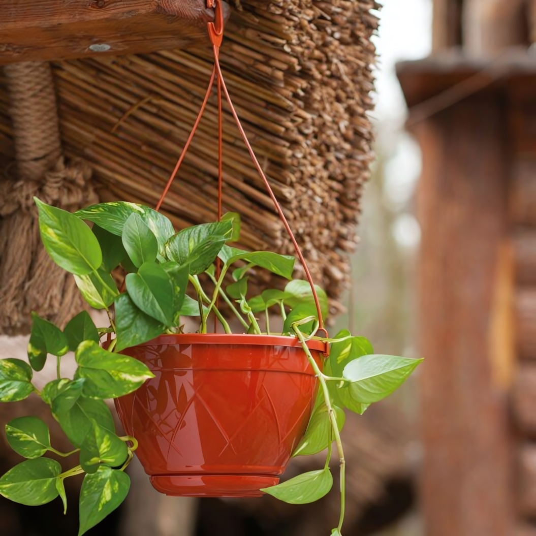 - Встроенный крючок: позволяет легко подвесить кашпо на ветку дерева, крюк на стене, перголу или садовую конструкцию.