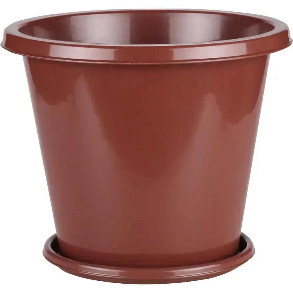 Горшок цветочный пластиковый 10л с поддоном, цвет коричневый, классический дизайн
