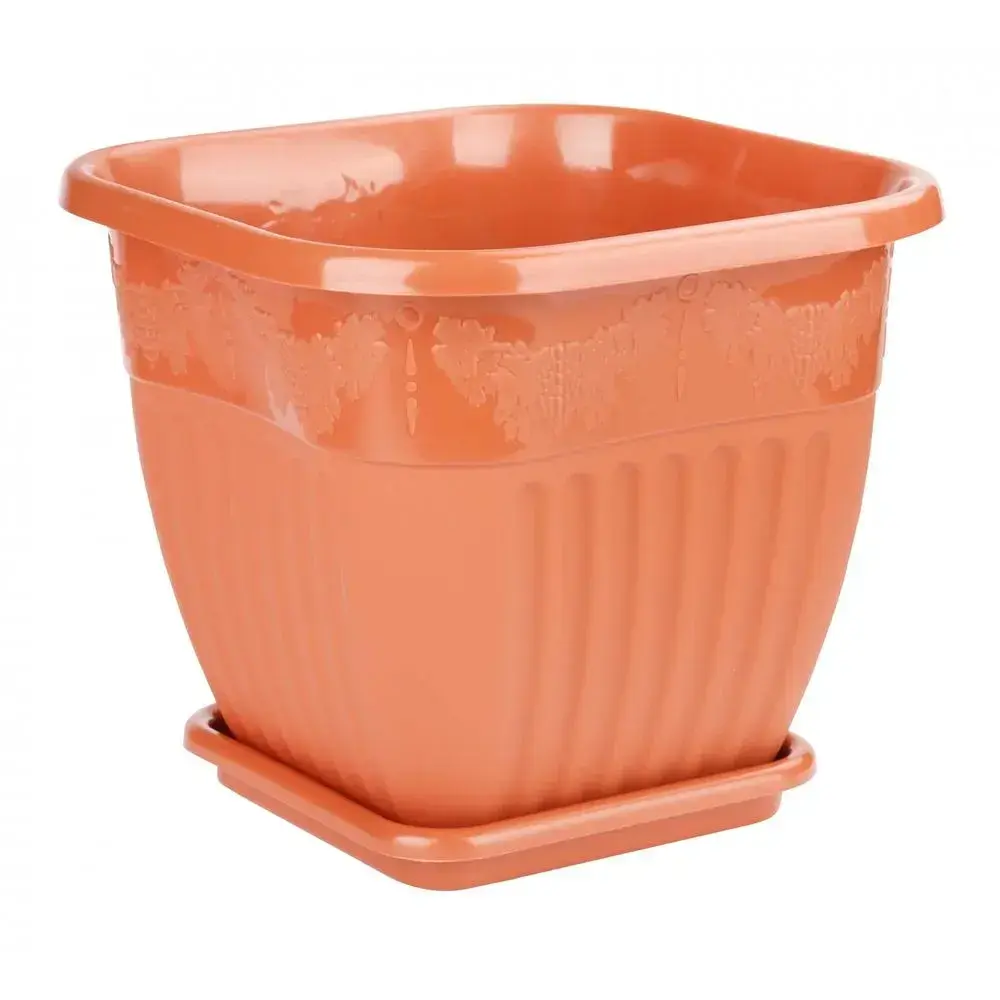 Горшок квадратный 8л, комплект из 16 шт, коричневый, прочный пластик, для цветов и рассады