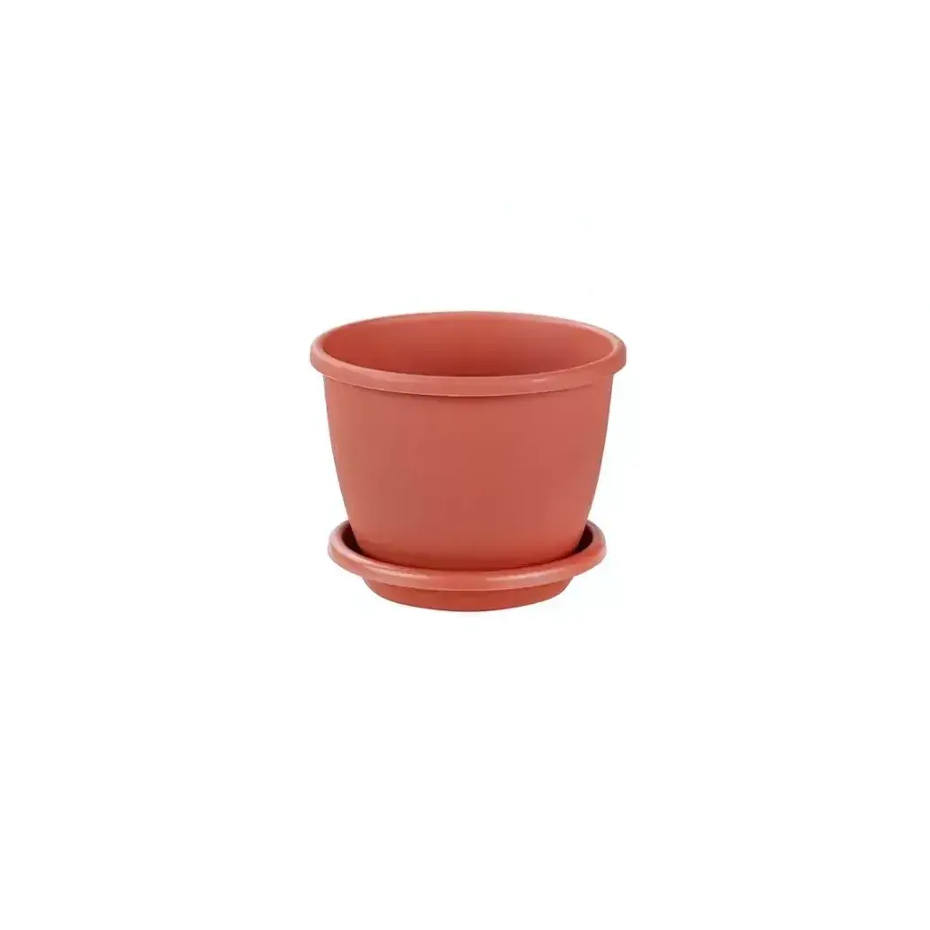 Горшок цветочный пластиковый с поддоном 1,1л, коричневый, практичный дизайн