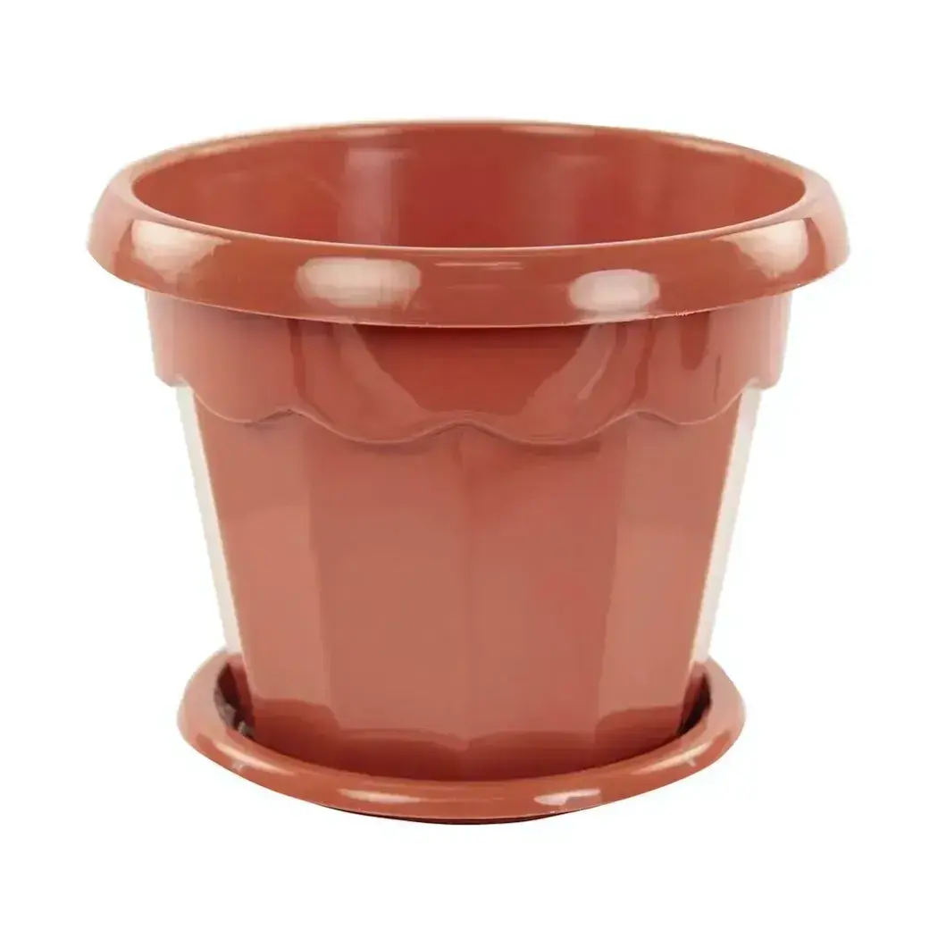 Горшок цветочный «Гармония» с поддоном 1,5л, пластик, коричневый — удобный дренаж и стильный дизайн