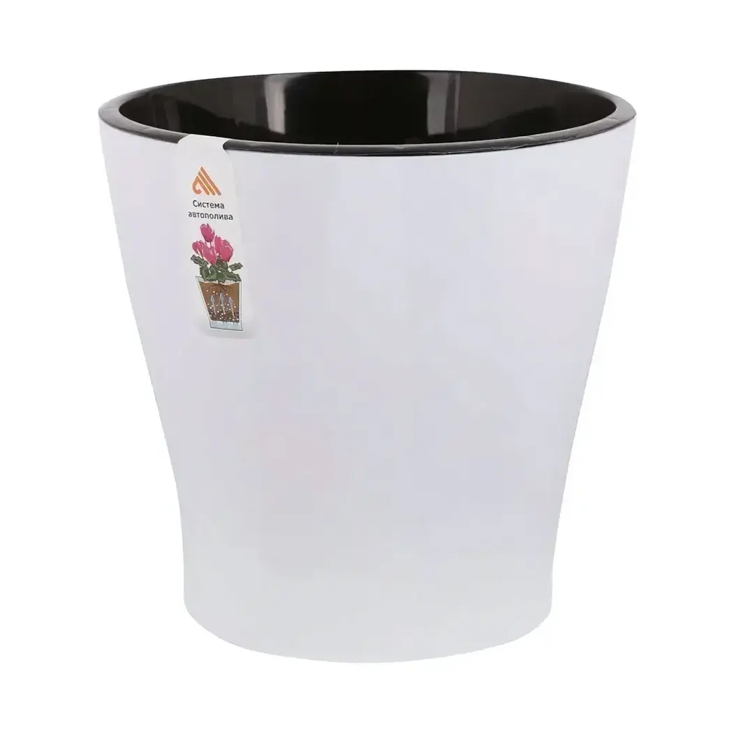Горшок цветочный «Лея» с системой автополива, 3,6л, белый/чёрный, пластик